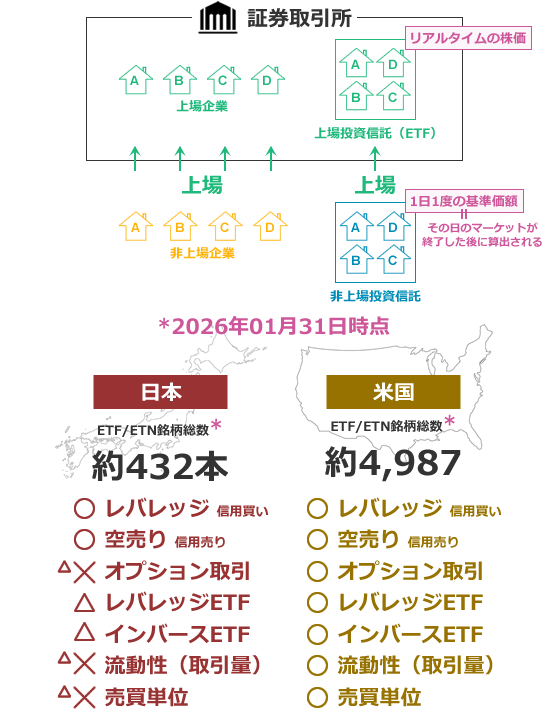 日本市場のETF/ETN銘柄数(ETF399本 / ETN33本) |
